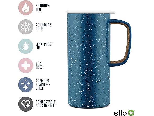 Ello Campy 18oz Stainless Steel Travel Mug with Handle and Leak Proof Lid | Vacuum Insulated Coffee Cup for Hot or Cold Drinks | Reusable, BPA Free | Gift for Coffee Lovers, Sea