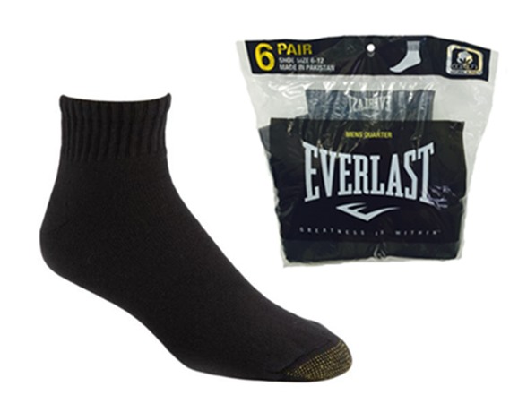 Everlast Men's Black Quarter Length Socks, 6 Pairs