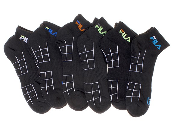 Fila Men's Moisture Wicking Black Quarter Socks, 6 Pairs