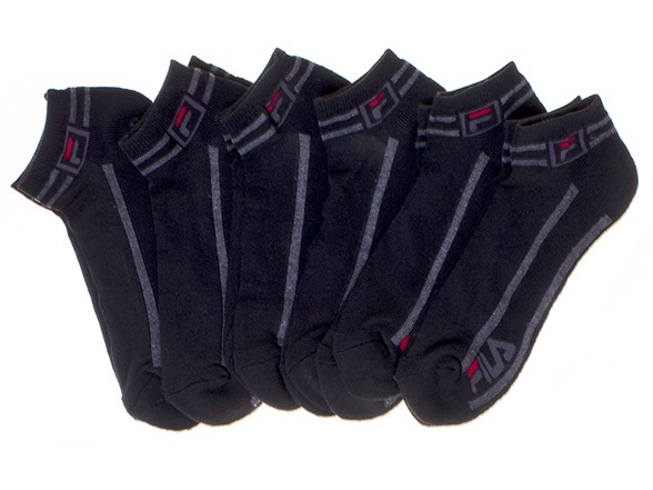 Fila Men's Moisture Wicking Black Stripe Low Cut Socks, 6 Pairs