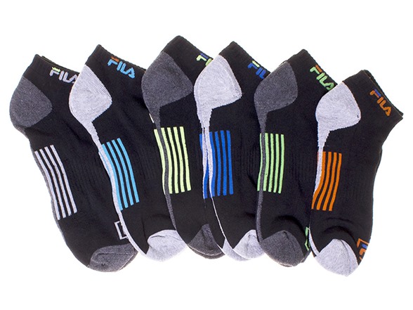 Fila Men's Moisture Wicking Black Tech Low Cut Socks, 6 Pairs