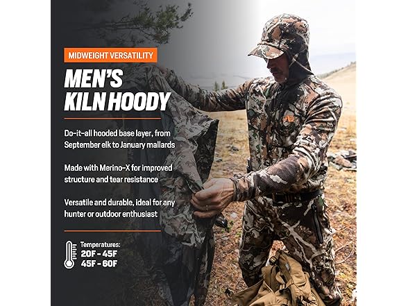 First Lite Men‚ Kiln Hoody - Camo Merino Wool Base Layer, Midweight Thermal Cold Weather Hunting Gear for Men, Terra, X-Large