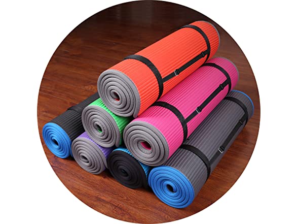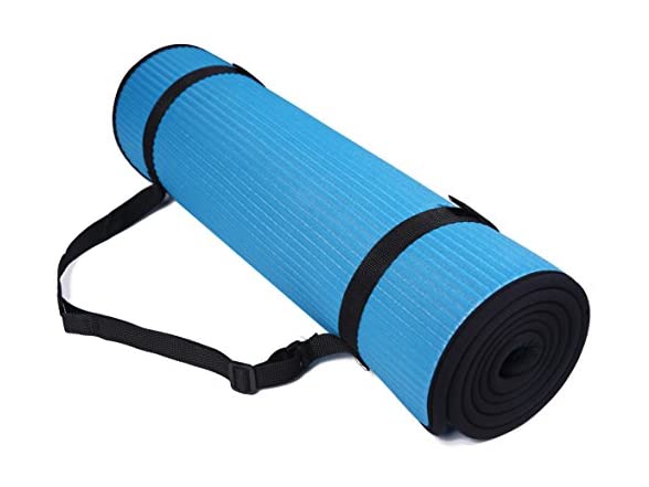 Fitvids All-Purpose 2/5-Inch (10mm) Extra Thick High Density Anti-Slip Exercise Pilates Yoga Mat with Carrying Strap, Blue