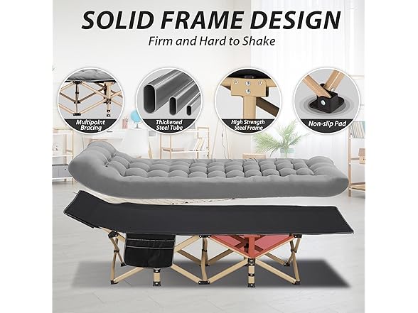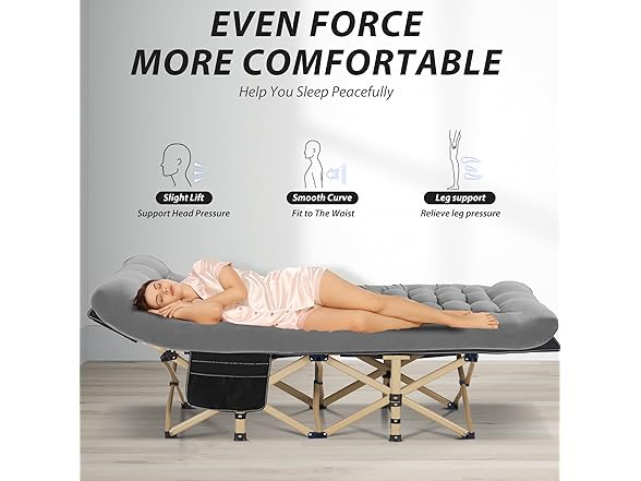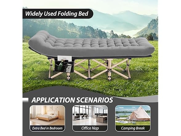 - 【Intimate Details】The camping bed are cleverly designed with a spacious side pocket at your hand to easily accommodate a variety of personal belongings such as magazines, mobile phones, water bottles and glasses, making your rest experience more convenient and comfortable.