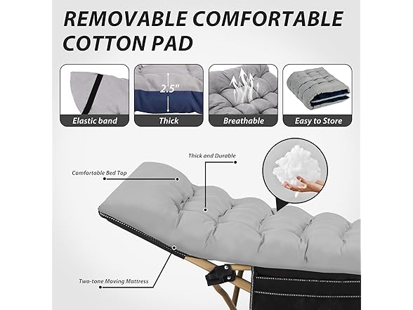 - 【Removable Mattress & Comfortable】Candockway folding camping cot has a removable cushion for increased comfort. The detachable design allows folding bed to be used all year round. The bed body is made of 1200D Oxford cloth, durable and easy to clean, with strong air permeability. The tilted head design supports the head, enjoys a quality sleep experience.