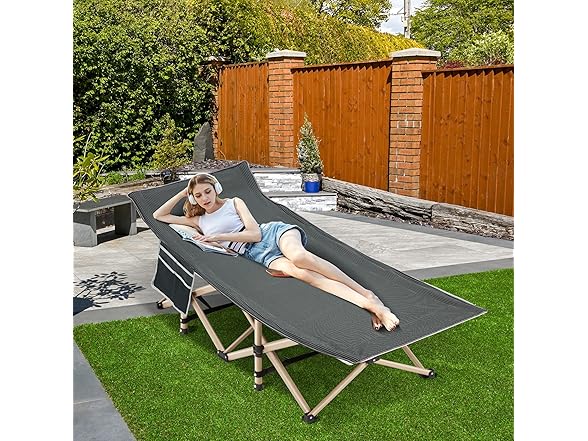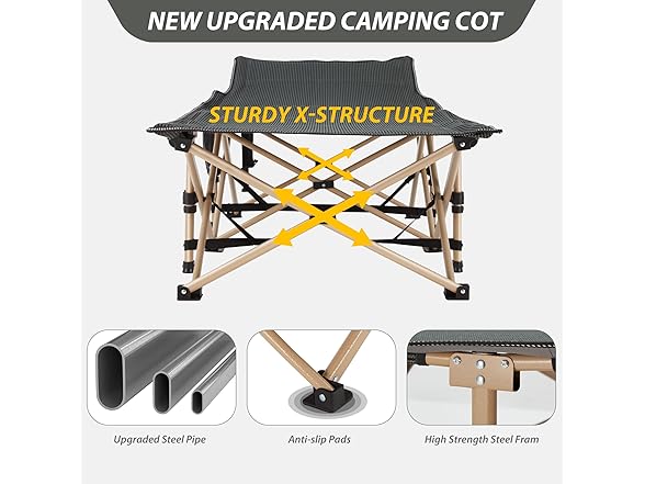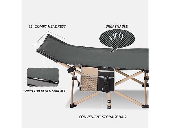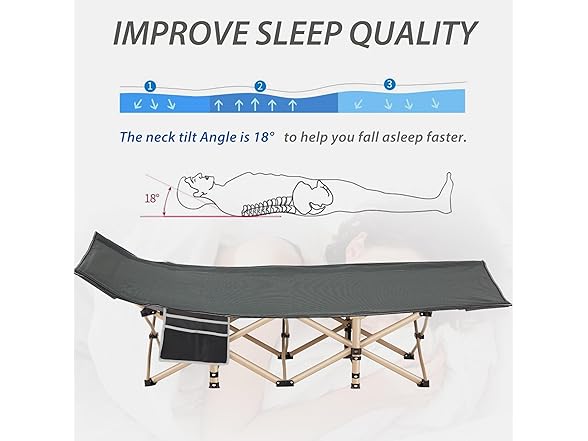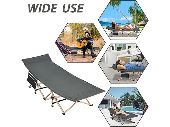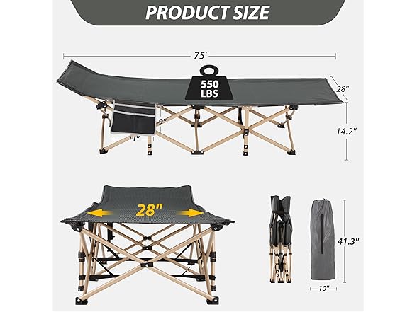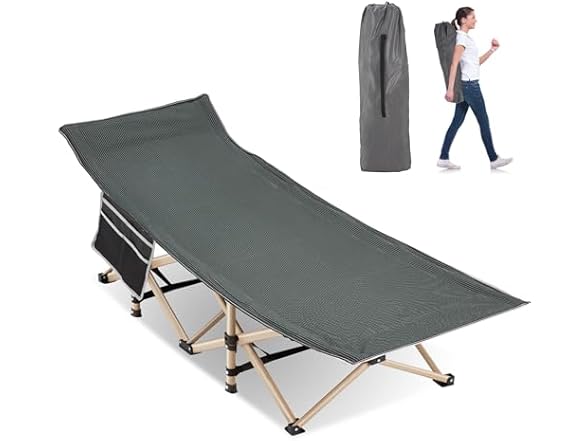 Folding Camping Cot for Sleeping, Portable Cots for Adults, Heavy Duty Cot Bed 550LBS(Max Load), Extra Wider Cots with Large Pocket for Outdoor, Office, Beach