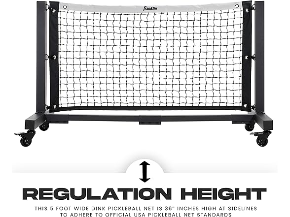 - REGULATION HEIGHT: Our 5 foot dink pickleball net is 36” inches high at sidelines to adhere to official USA Pickleball net standards