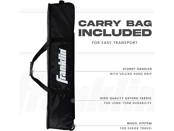 - CARRY BAG INCLUDED: Store your premium net in our luxe carry bag! Made from high quality oxford fabric, this bag will keep your net safe and sound. Utilize the wheel system to travel easier with your net as well!