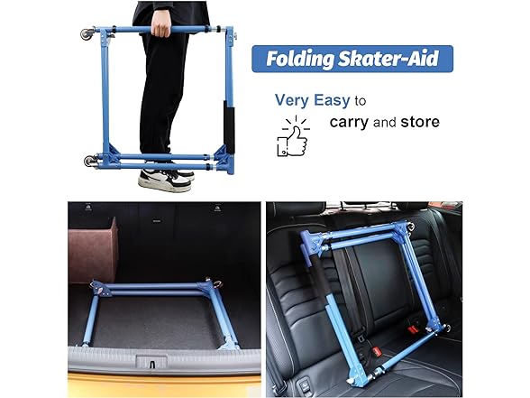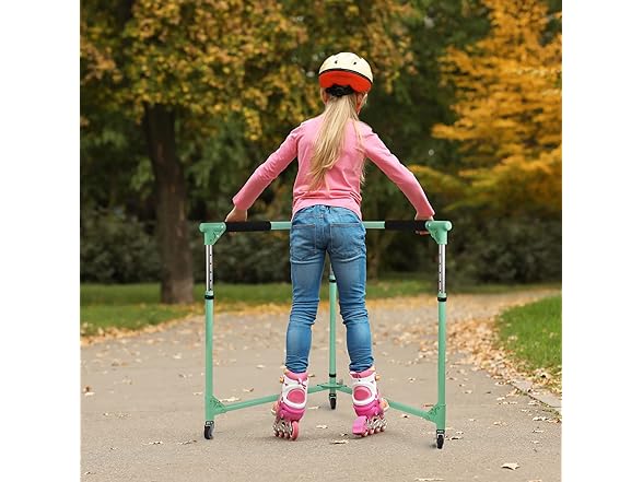 GanFindX Folding Skater Aid for Kids Roller Skating, Adjustable Height Roller Skate Trainer for Kids Toddler Training Walker (Seafoam Green)