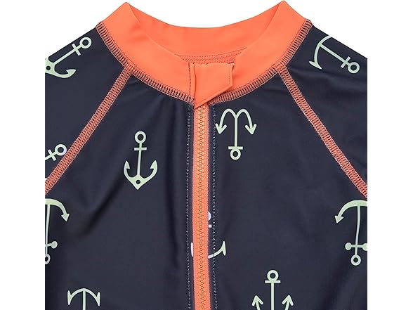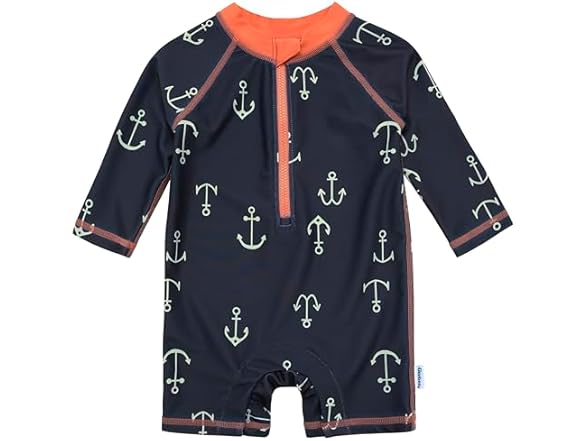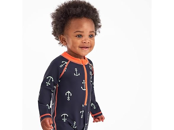 Gerber Baby Boys Toddler Long Sleeve One Piece Sun Protection Rashguard Swimsuit, Blue Anchor, 3-6 Months