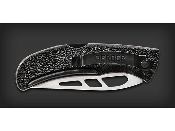 E-Z Out knives from Gerber are E-Z to access, E-Z to open, and E-Z to use. The handle features molded Kraton rubber inserts, providing a positive and comfortable grip during use. Plus, the low-profile oval hole in the blade allows one-handed opening, yet keeps the blade shape unobtrusive for everyday use. This full-size knife will clip easily to your pocket or belt, so it can be carried in any situation. The pocket clip is stainless steel, removable, and replaceable. 3.5-inch blade length. 8-inch open length.