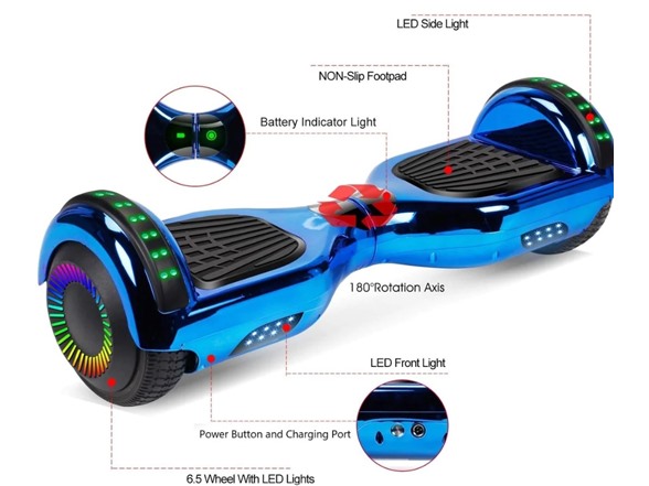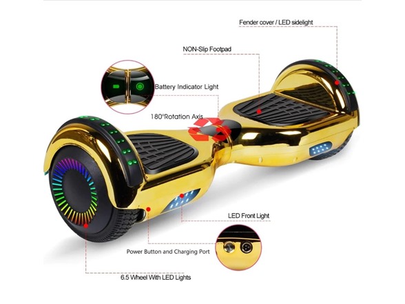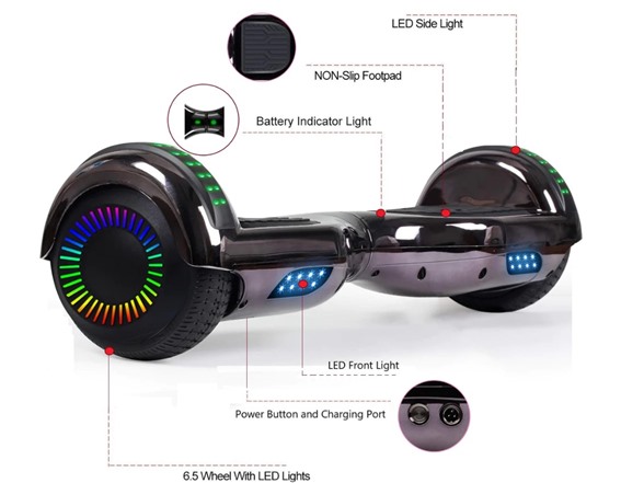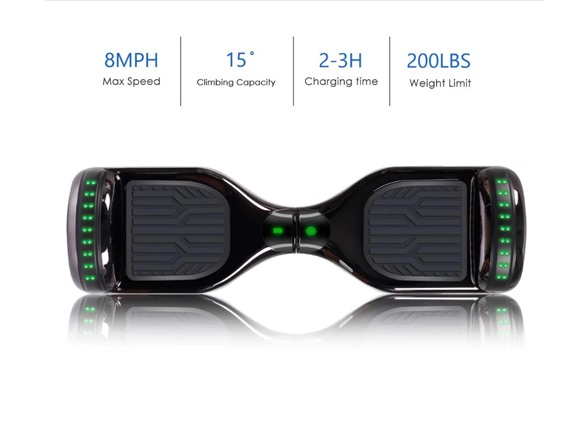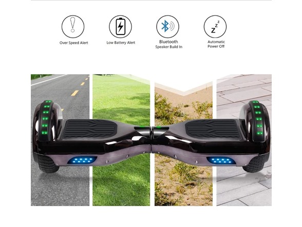 - Top-Of-The-Line Features - You’ll always be visible when using this hoverboard, thanks to a bright headlight and top light that changes color whenever you change direction.