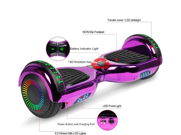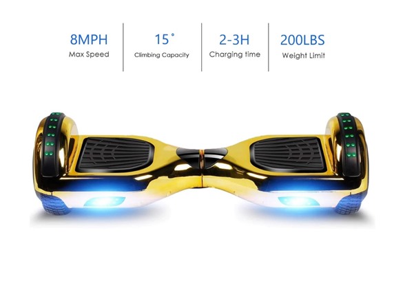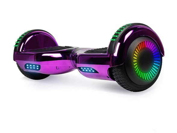 The HB-M3 Chrome is a truly innovative hoverboard. It’s Bluetooth-enabled to connect with portable devices, so you can play your favorite tunes on your onboard speaker. It also features colorful LED top lights that change color when you change direction, and light-up tires that switch between different colors. The hoverboard is UL-certified and easy to master thanks to its unique self-balancing technology.