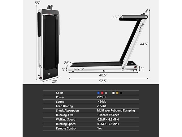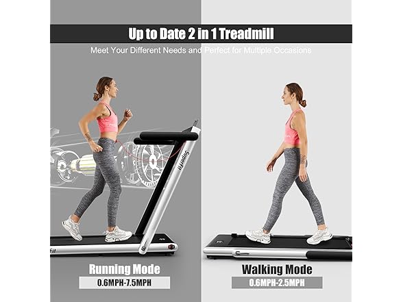 Goplus 2 in 1 Folding Treadmill, 2.25HP Superfit Under Desk Electric Treadmill, Installation-Free with Remote Control, APP Control and LED Display, Walking Jogging for Home Office