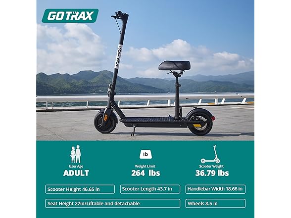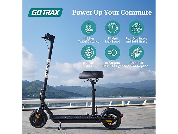 Gotrax Fusion Seat Electric Scooter for Adults, 8.5" Solid Tire Max 14 Miles Range, 15.5/18 Mph 2 Gear Speed Power by 300W Motor, Rear Double Suspension EABS&Disk Brake, Foldable Escooter with Saddle