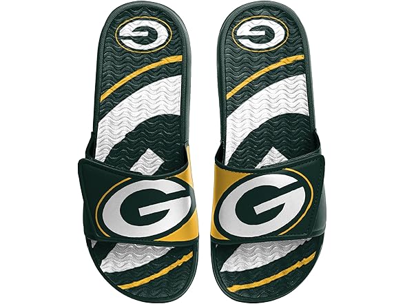 FOCO Green Bay Packers NFL Mens Colorblock Big Logo Gel Slides (7-8)
