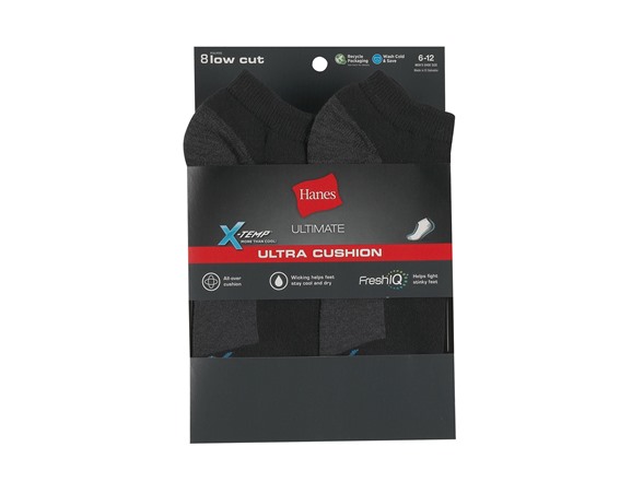 Hanes Ultimate Men's Ultra Cushion Socks are the ultimate in comfort! With plush loops of cushioning inside the entire sock, from toe through the top, these socks provide comfort in every step. Wicking fabric is combined with our X-Temp technology to help keep feet cool, dry, and comfortable. With FreshIQ Advanced Odor Technology and durable materials, these socks are sure to provide long-lasting comfort.