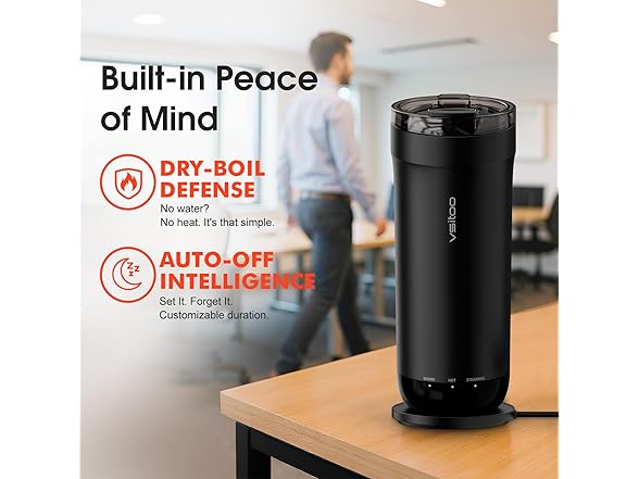 - 【Premium Stainless Steel Construction】Crafted with 316 stainless steel and scratch-resistant coating, this stainless steel travel electric kettle is BPA-free and waterproof. The smart temperature control travel coffee mug delivers consistent heat retention for maximum enjoyment.