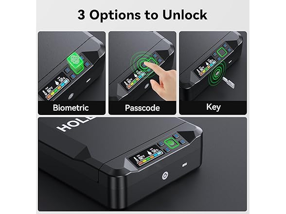 - 3 Ways to Access: The gun safe for car with features of biometric, passcode and keys to ensure easy and quick access when needed. 50 fingerprints and 8 unique 6-digit codes.