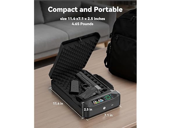 - Small for Portable: The size of locking pistol case is 11.4x7.1x2.5inches, weight 4.65lbs. Compact and portable design, easily fits in a backpack or suitcase for travel.