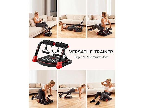 - 10 in 1 Full-Body Workout: The ab machine does way more than sit-ups—target abs, arms, legs, glutes, and back with crunches, push-ups, leg lifts, bridges, and strength moves. Sculpt lean muscle, build endurance, and train every major group without the gym clutter
