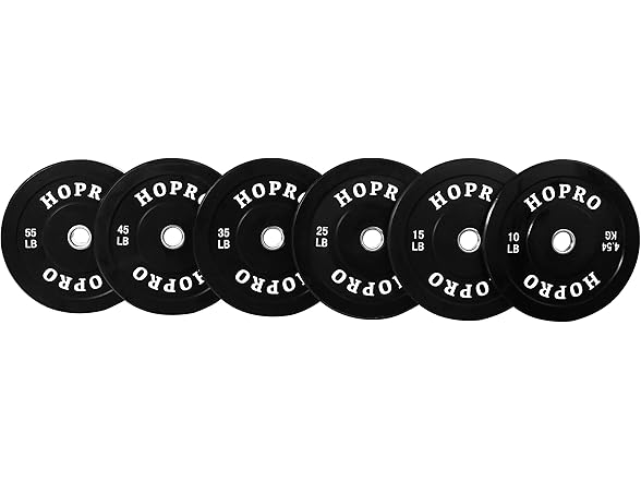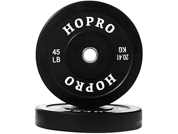 HoPro Olympic Bumper Plate Weight Plate with Steel Hub, Style #2, 45lbs Pair
