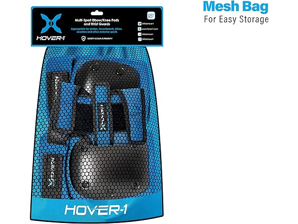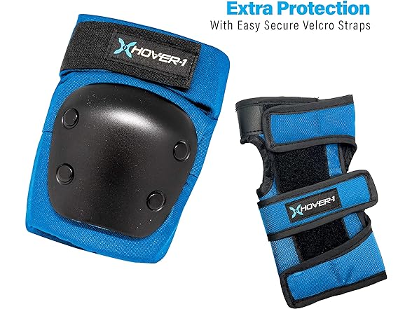 Hover-1 Nylon Protective Elbow Pads | Knee Pads & Wrist Guards, For Ages Above 8, Hard PP Shells for Impact Resistance & EVA Foam Protective Padding for Maximum Comfort, Velcro Straps, Small, Blue