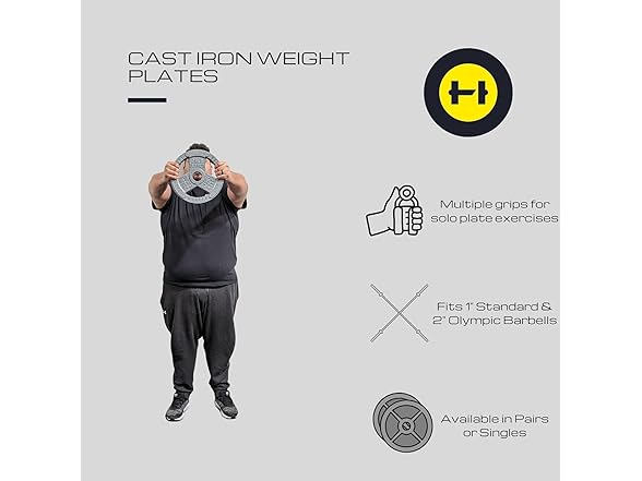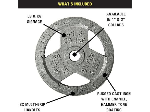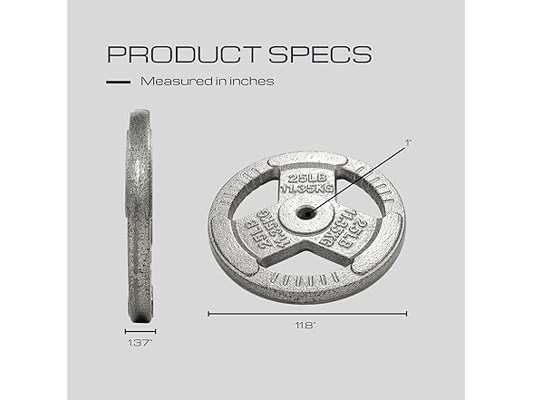 HulkFit 1-inch Iron Plate for Strength Training, Weightlifting, Single (25 Pounds), Silver