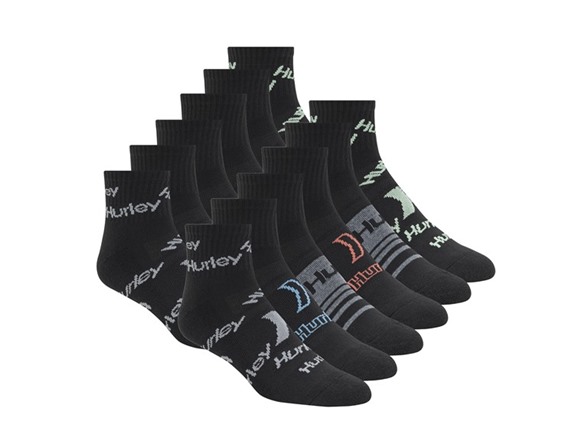 Hurley Men's 12-Pairs Quarter Crew Socks