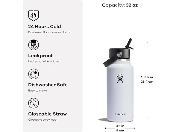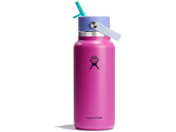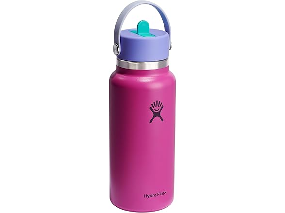 Hydro Flask Water Bottle - Insulated Stainless Steel - Wide Mouth Flex Straw Lid, Non Spill, Leakproof and Refillable in 32oz Holiday Punch