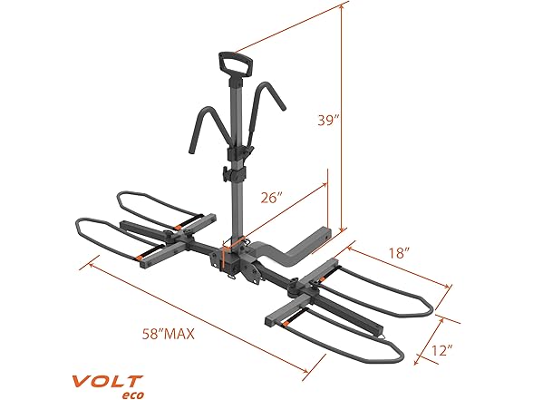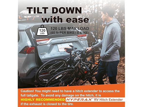 HYPERAX Volt eco - E Bike Hitch Mounted Platform Style 2 Bikes Carrier for Car, SUV, Trucks, Sedan, Tilting e-Bike Rack for Hitch Fits Up to 2 X 60 lbs Bike with Up to 5" TIRE - NO RV USE!