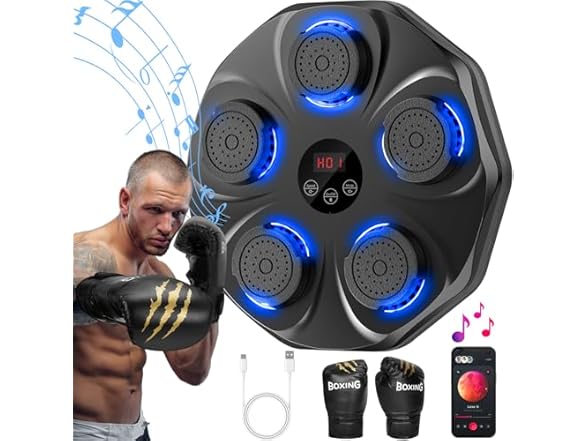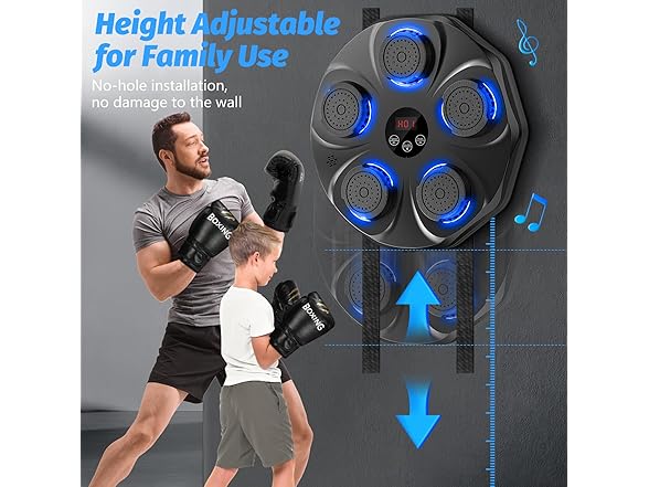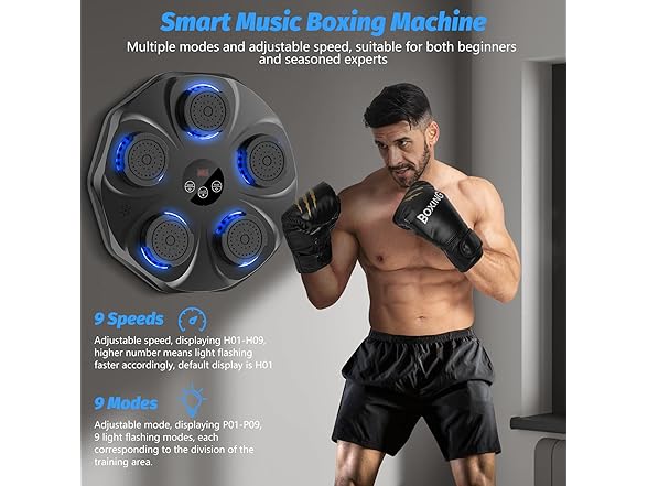 Music Boxing Machine, Interactive Punching Trainer with Boxing Gloves, Large Size Wall Mounted Electronic Boxing Target for Adults Kids, 9 Modes & 9 Speeds
