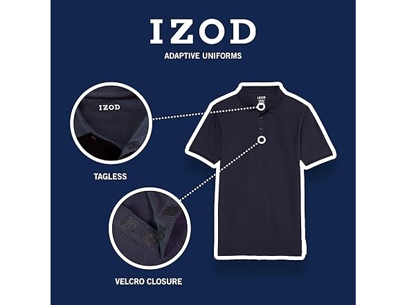 IZOD Boys' School Uniform Adaptive Short Sleeve Pique Polo with Velcro Closure, Navy, 8