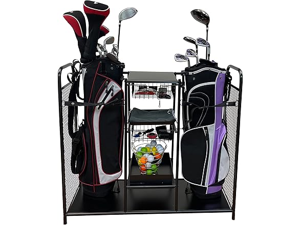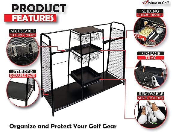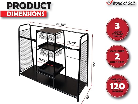 JEF WORLD OF GOLF Golf, Gifts, & Gallery 457 Metal Golf Bag Organizer, Black Double