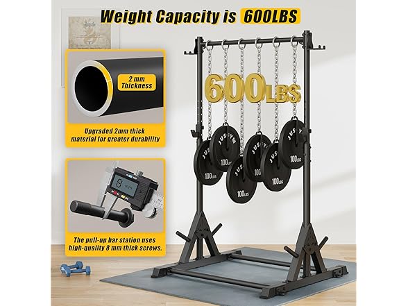 Pull Up Station, Strength Training Workout Pull Up Bar Free Standing, Adjustable Heavy Duty Pullup Bar Station, 600LBS Weight Capacity
