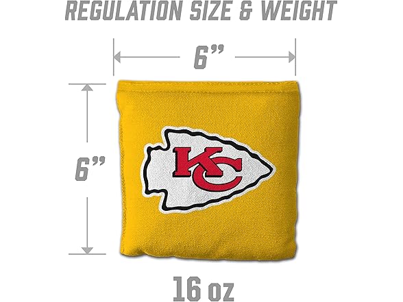 YouTheFan Officially-Licensed NFL Kansas City Chiefs Set of 8 Cornhole Bags - All Weather Dual Sided Slide & Stop - Regulation Size with Carry case