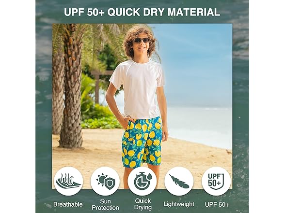 • UPF 50+ Quick Dry Microfiber: Our boys swim shorts are lightweight and durable, and will be your most comfortable pair of boys swim trunks