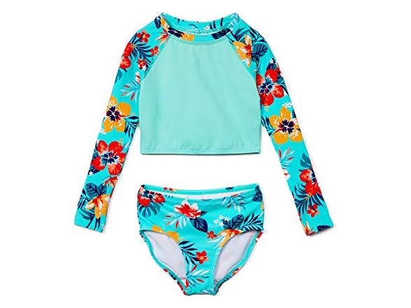 Kanu Surf Girls' Long Sleeve Rashguard UPF 50+ Two Piece Swim Set, Brooke Crop Ice Green, 3T