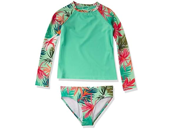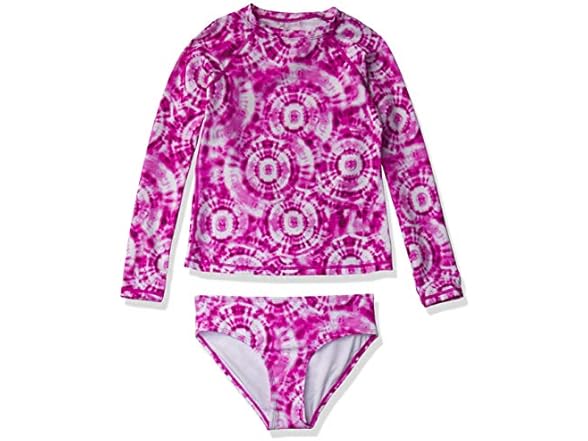 Kanu Surf Girls' Long Sleeve Rashguard UPF 50+ Two Piece Swim Set, Groovy Pink, 12