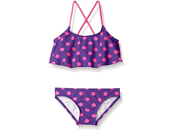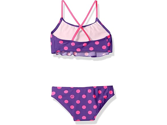 Kanu Surf Girls' Karlie Flounce Bikini Beach Sport 2 Piece Swimsuit, Suzie Purple Dot, 2T