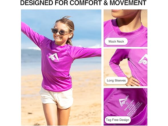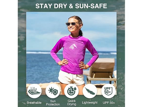 - Ultimate Comfort: With its soft, breathable fabric, our girls rash guard long sleeve is perfect for all-day wear, whether at the beach or pool. The girls rashguard offers a snug fit without compromising on ease of movement.