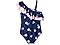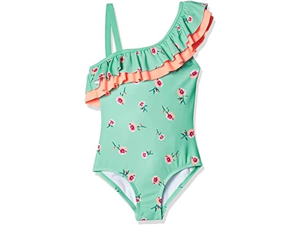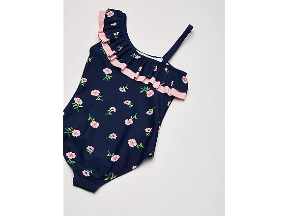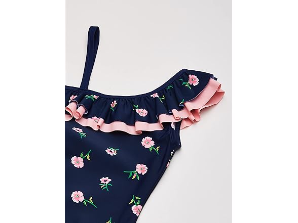 Kanu Surf Girls' Morgan Floral Ruffle 1-Shoulder 1-Piece Swimsuit, Navy, 5