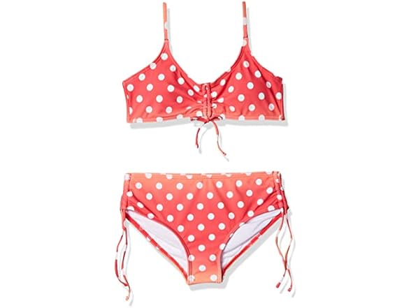 Kanu Surf Girls' Willow V-Neck Bikini Beach Sport 2-Piece Swimsuits, Dots Coral, 3T
