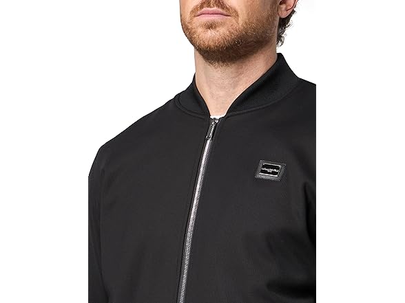 KARL LAGERFELD mens Chest Logo Pockets Zipper Detailing Collarless Jacket