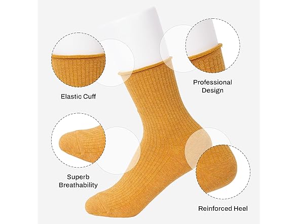 KGallery Feeto Women's Roll Top Socks - Fashionable Cotton Crew Socks, Multi-Colors Mix, Made in Korea - 6 Pairs (US, Numeric, 5, 9, Regular, Regular, 6, MIX 3)