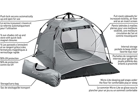 KidCo Peapod Camp Lightweight Pop Up Child Portable Travel Bed Camping Tent Extension with Retractable Sun Shade, Storage Pocket, and Carry Bag, Midnight