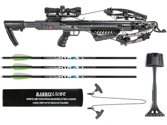Killer Instinct Burner 415 FPS Crossbow Package (Gray Camo) with Crossbows Slayer Crossbow Case, 20-Inch Crossbow Bolts (6-Pack) and 100-Grain Hunting Broadheads (3-Pack) Bundle ( 4 Items)