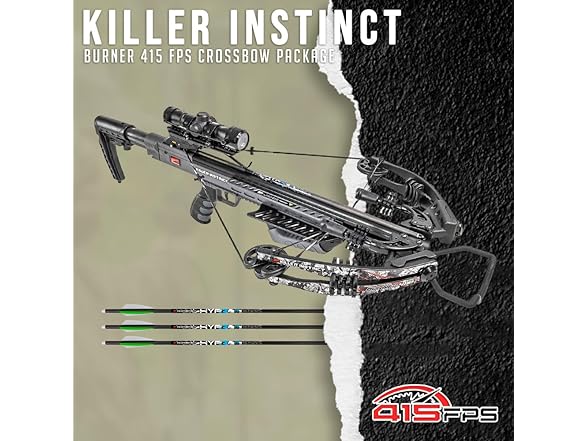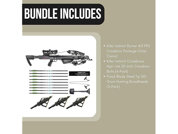 Killer Instinct Burner 415 FPS Crossbow Package (Gray Camo) Basic Bundle (3 Items)
