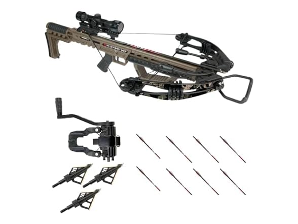 Killer Instinct Lethal HD405 Crossbow Bundle with Dead Silent Crank, 8 Hypr-V Crossbow Bolts and (3-pack) Fixed-Blade Steel Tip 100-Grain Hunting Broadheads