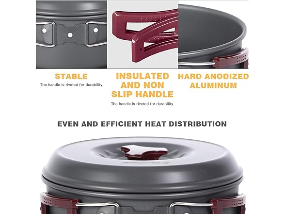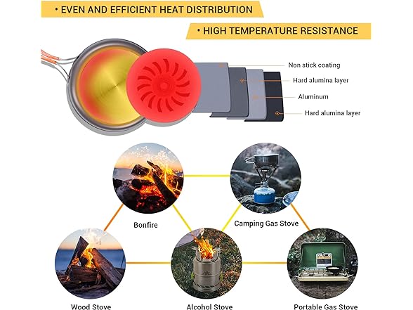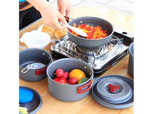 - USEFUL: The hard-anodized aluminum foldable camping cookware set can meet food safety level. Ideal for camping, hiking, backpacking, picnic and other outdoor activities. Apply to all people.